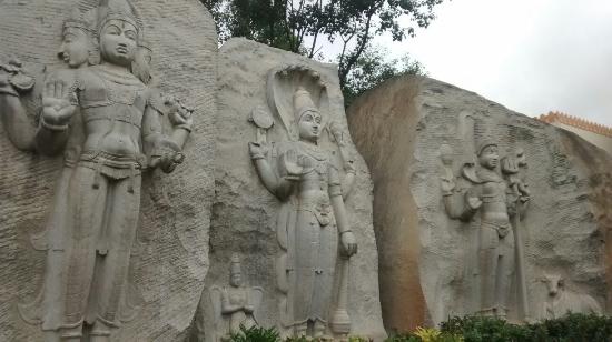 figures of Holy Trinity (Brahma, Vishnu and Shiva) engraved on huge rocks. It